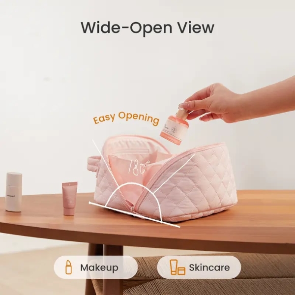 Zaprojektowana dla kobiet, które cenią zarówno piękno, jak i wygodę, ta puszysta kosmetyczka z łatwością pomieści wszystkie codzienne kosmetyki i produkty do pielęgnacji, zachowując swój kształt i strukturę.