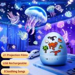 Zdejmij klosz, aby odkryć projektor w wysokiej rozdzielczości, który wyświetla urzekające obrazy, takie jak dinozaury, gwiazdy i syreny, tworząc magiczną atmosferę.