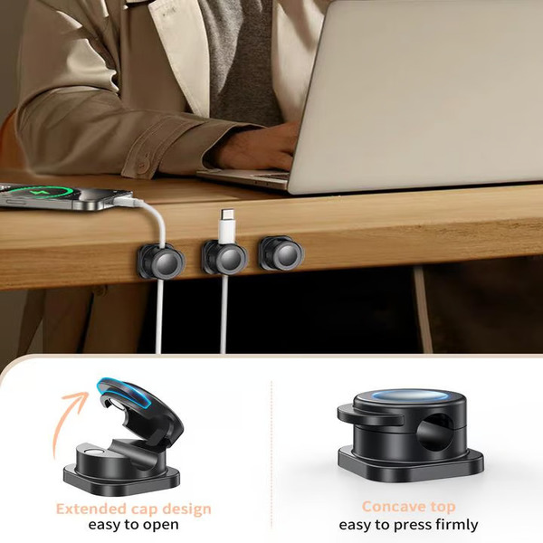 Utrzymuje przewody ładujące w porządku i zapobiega ich spadaniu z biurka.