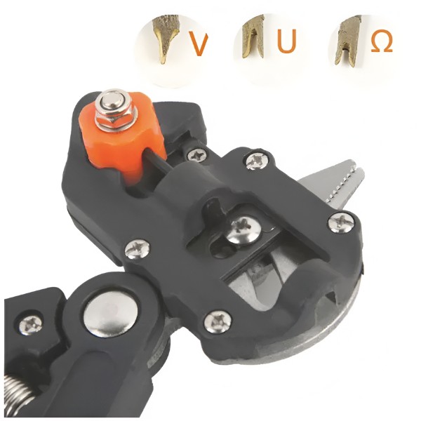To narzędzie posiada 3 wymienne ostrza (V, U, Ω), które umożliwiają wykonywanie różnych rodzajów cięć, co czyni je idealnym do różnorodnych zadań przycinania i szczepienia.
