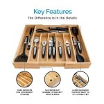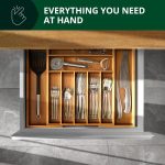 Regulowana konstrukcja Taca zaprojektowana tak, aby rozszerzać lub zmniejszać szerokość, aby dostosować się do wymiarów szuflady kuchennej i specyficznych wymagań dotyczących przechowywania.